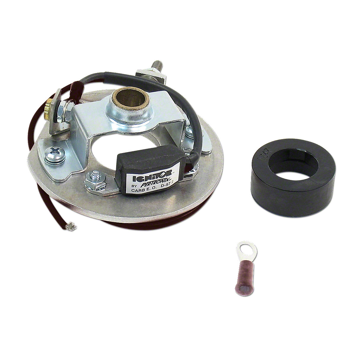 No more cleaning, adjusting, or replacing ignition points in the hard-to-reach places on this tractor. With this pointless electronic ignition system. This kit provides a much better and more stable spark on the spark plugs, resulting in smoother engine running. Use at 6 volts and ground the positive side of the battery.