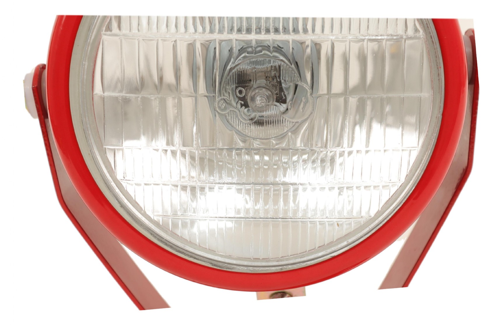 Plow lamp or work lamp with a metal housing and rear handle On/Off pull switch Lamp diameter: 150 mm Lens diameter: Ø 130 mm Lens with tractor logo Lamp: H3 (pre-assembled) Base plate mounting center to center: 12 cm